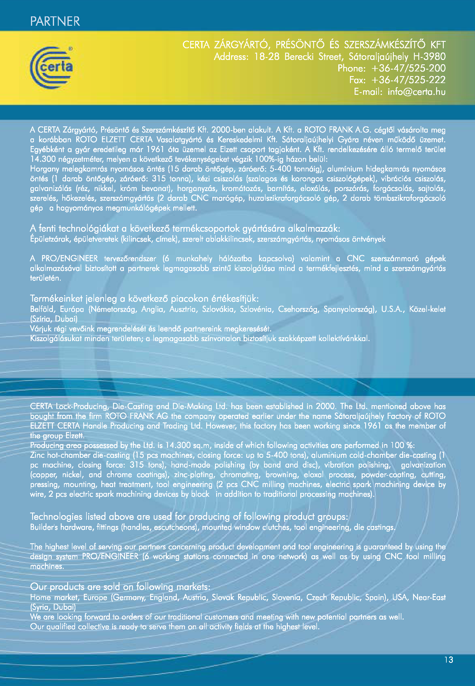 CERTA Zárgyártó, Présöntő és Szerszámkészítő Kft.